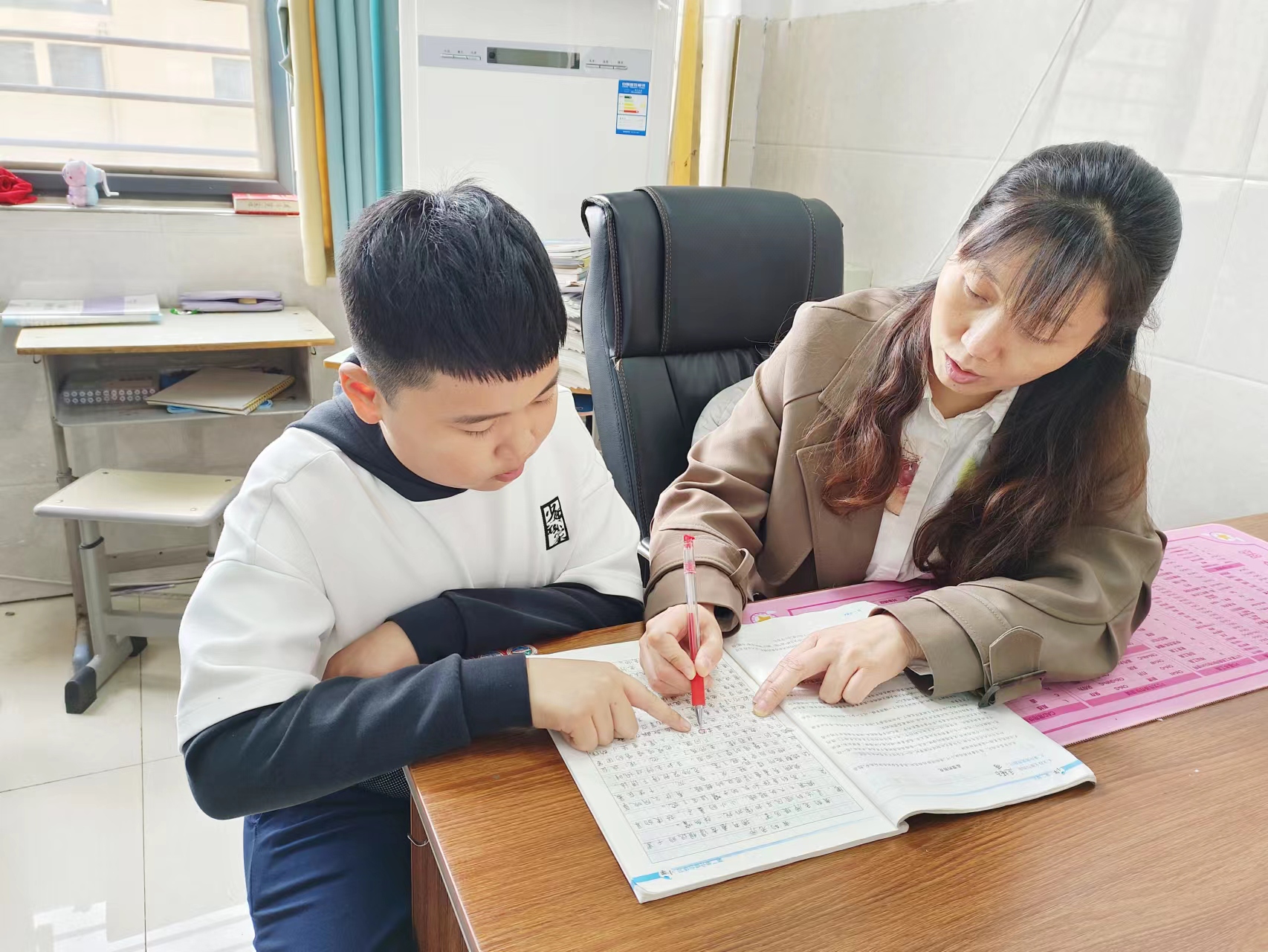 她还关心学生的心理发展,用自己的专业知识和生活经验,帮孩子们解决了一个又一个思想难题。